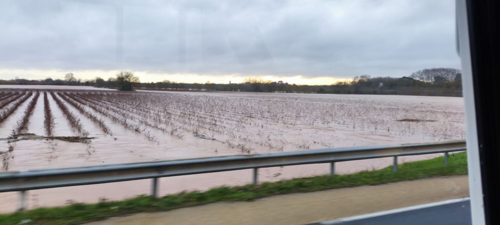 Fortunatamente, una volta arrivati nei pressi di Béziers, la pioggia ha smesso di cadere, ma il vento non ci ha dato tregua, continuando a soffiare con forza. Siamo arrivati a Coursan alle 17:30, dopo nove ore di viaggio. È stata una prima giornata impegnativa, segnata dal maltempo, ma siamo soddisfatti di aver raggiunto la meta nonostante le condizioni avverse.