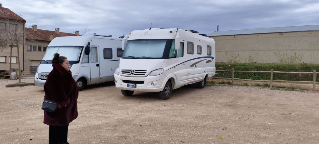 Alle 12:00 abbiamo fatto tappa a Caspe. Qui, oltre al pranzo, abbiamo sfruttato l’ora e mezza di sosta per le operazioni tecniche: carico acqua e pulizia di grigie e nere, riportando il camper in piena efficienza.