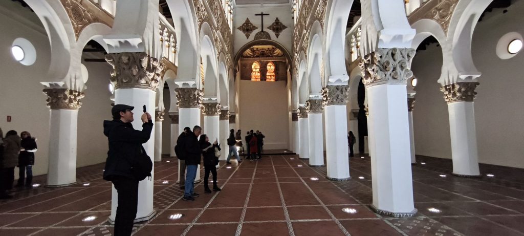 Nonostante il nome cristiano, è uno dei più antichi esempi di architettura mudéjar al mondo. Le sue pareti bianche e le file di archi a ferro di cavallo ci hanno trasportato in un’atmosfera di pace assoluta.