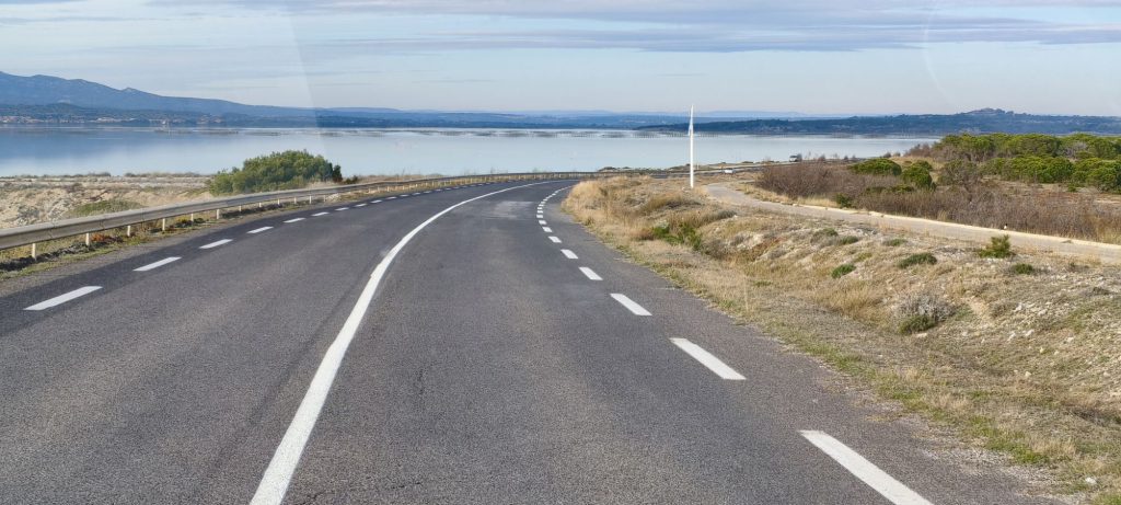 Sazi e rigenerati, alle 14:30 abbiamo messo in moto Camillo. Abbiamo percorso circa 150 chilometri risalendo la costa della Linguadoca, attraversando paesaggi dominati dalle lagune e dal sale.