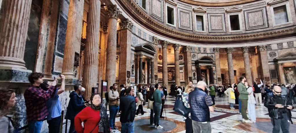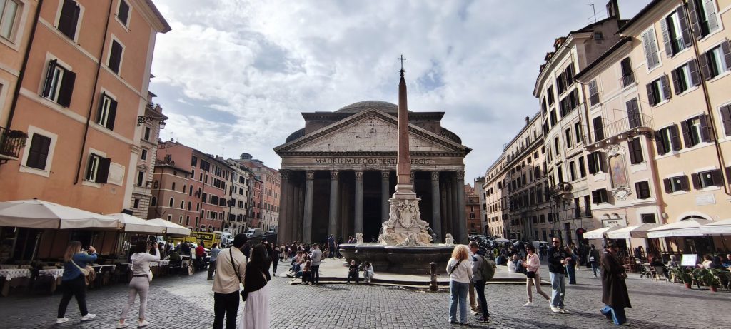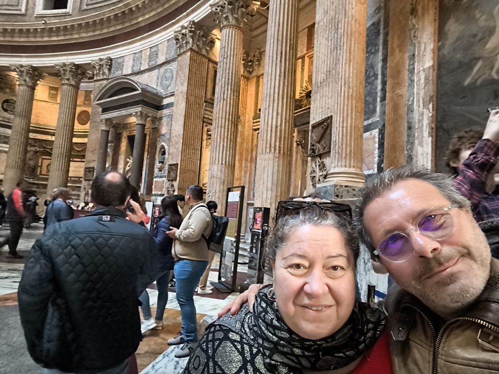 La giornata di mercoledì 11 marzo è iniziata con l’ultimo saluto alla Capitale. Prima di lasciare Roma, abbiamo dedicato la mattinata a un ultimo giro in sella alla moto, puntando dritti verso il cuore del centro storico per ammirare il Pantheon. Questo monumento, uno dei meglio conservati dell’antichità, colpisce sempre per la sua maestosa cupola emisferica in calcestruzzo, la più grande al mondo mai realizzata senza armatura. Edificato originariamente da Agrippa e poi ricostruito da Adriano, il Pantheon rappresenta l’apice dell’ingegneria romana, con il suo celebre “oculo” centrale che lascia entrare la luce (e talvolta la pioggia) nel tempio dedicato a tutte le divinità.