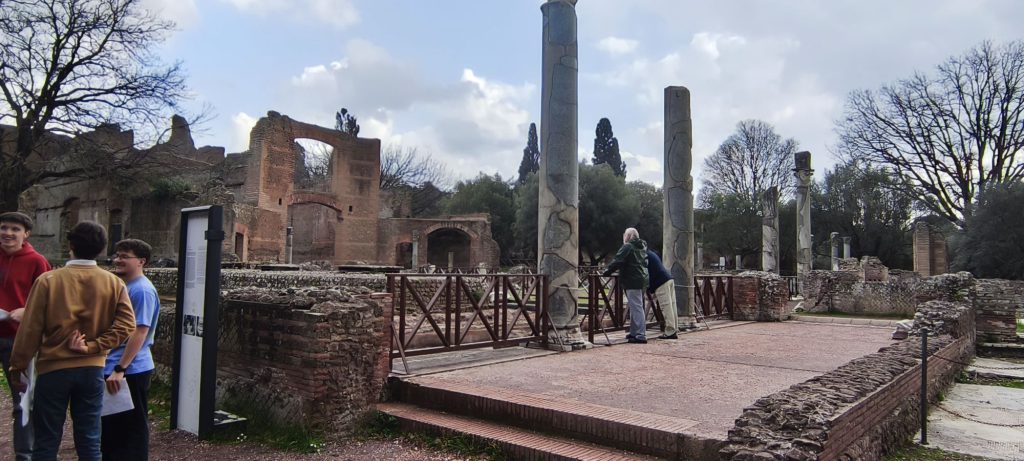 Alle 12:00 precise siamo partiti in direzione Tivoli, con l’obiettivo di visitare Villa Adriana. Appena arrivati ci siamo concessi una pausa per il pranzo, preparandoci alla scoperta di quella che fu la dimora extraurbana dell’imperatore Adriano nel II secolo d.C. La villa è un complesso monumentale unico, concepito come una “città ideale” che riproduceva i luoghi più belli dell’impero visitati dal sovrano, come il Canopo o il Pecile.