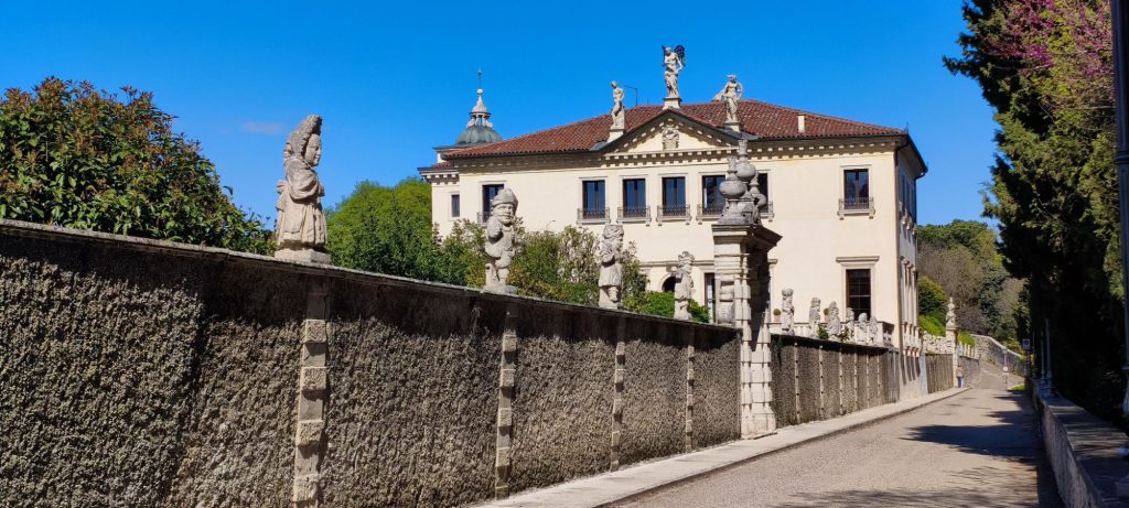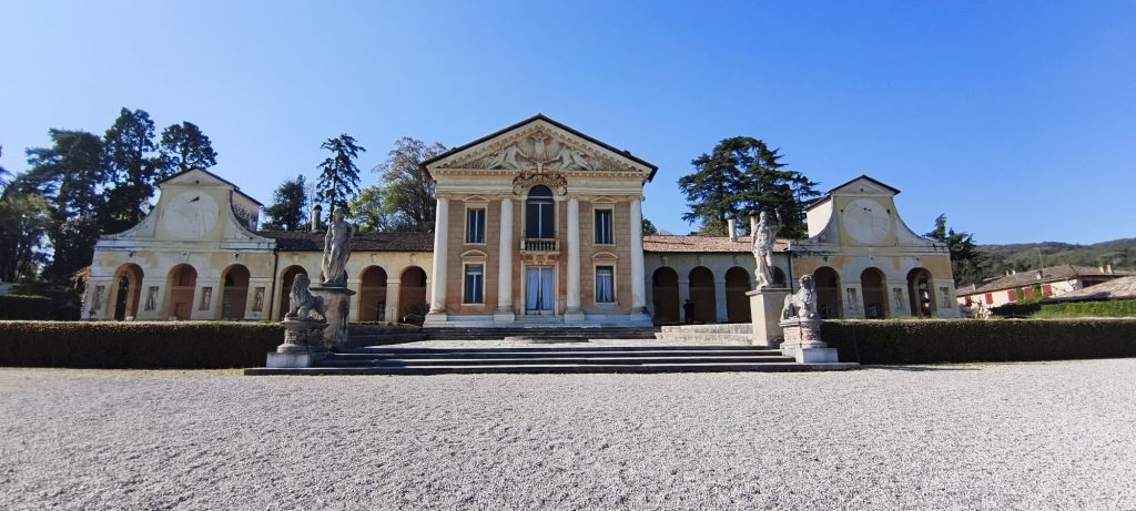Costruita per la famiglia Emo, la villa presenta una struttura lineare con un corpo centrale e lunghe barchesse laterali, utilizzate per le attività agricole. Anche qui Palladio dimostra la sua capacità di integrare architettura e paesaggio, creando un insieme armonico e perfettamente inserito nel contesto rurale. Gli interni, che visiteremo il giorno successivo, sono decorati con affreschi di grande valore artistico, attribuiti a Giovanni Battista Zelotti.