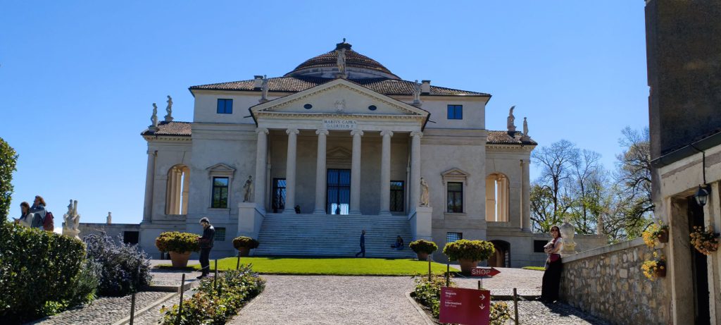 La tappa successiva è stata Villa La Rotonda, probabilmente l’opera più celebre di Palladio. Costruita nel XVI secolo, questa villa rappresenta uno degli esempi più perfetti di architettura rinascimentale. La sua pianta centrale, simmetrica, con quattro facciate identiche dotate di portico, richiama i templi classici e trasmette un senso di equilibrio assoluto. La cupola centrale, ispirata al Pantheon di Roma, domina l’edificio e crea uno spazio interno armonioso e luminoso.