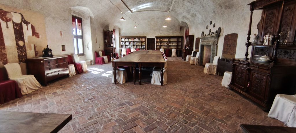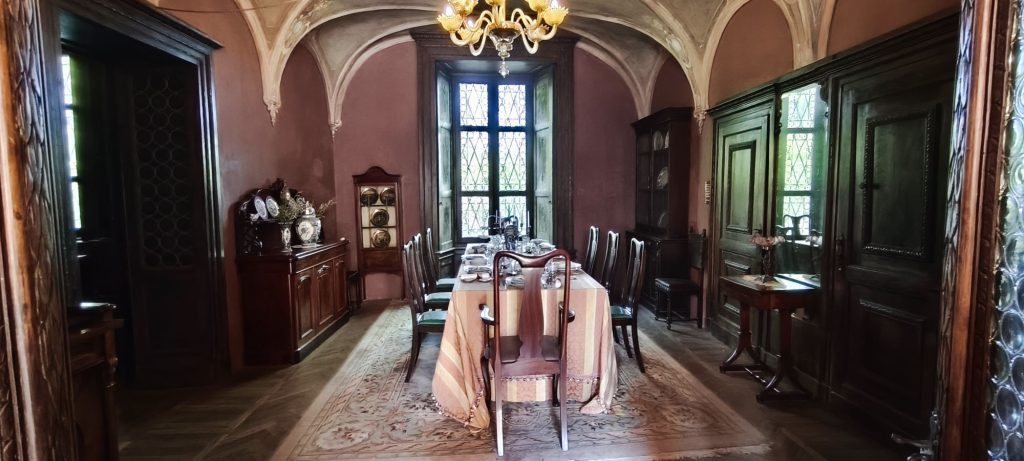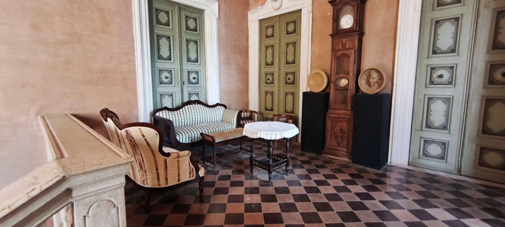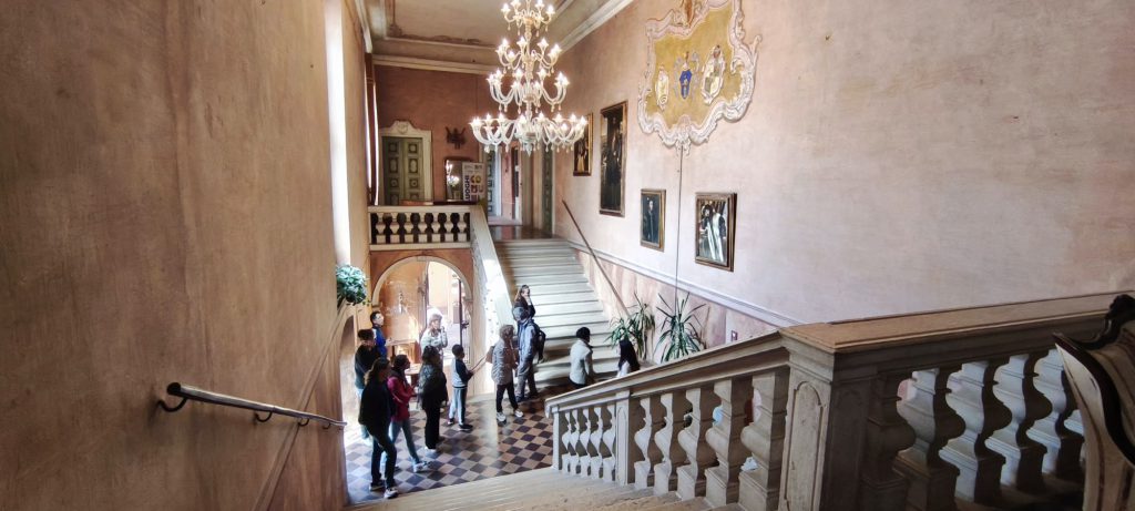 Gli interni, pur non essendo sfarzosi come quelli delle ville venete visitate nei giorni precedenti, raccontano una storia autentica fatta di vita quotidiana, di nobiltà rurale e di legame con la terra. Le sale conservano tracce del passato, tra affreschi, arredi essenziali e atmosfere che evocano un tempo lontano ma ancora percepibile. Camminare tra queste stanze offre una sensazione diversa rispetto alle grandi residenze aristocratiche: qui si respira una dimensione più concreta e vissuta.
